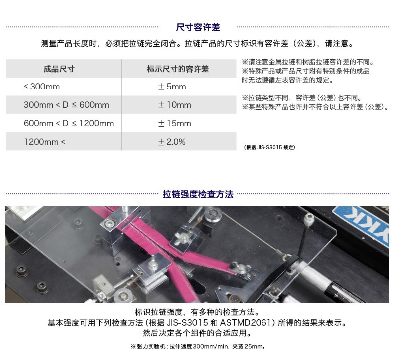 因拉链在制作过程中,机器操作之速度所产生的惯性及考虑链齿之完整性,拉链将出现允许公差,且长度越长,其允许公差越大。